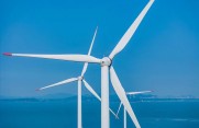 在波瀾壯闊的大海上,一座座白色風(fēng)車屹立不倒,日夜不息地將風(fēng)能轉(zhuǎn)化為清